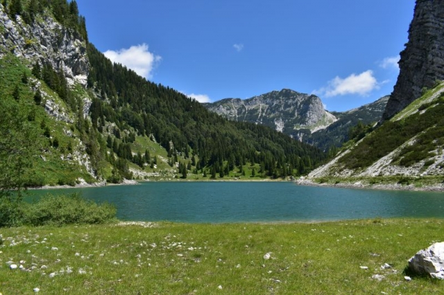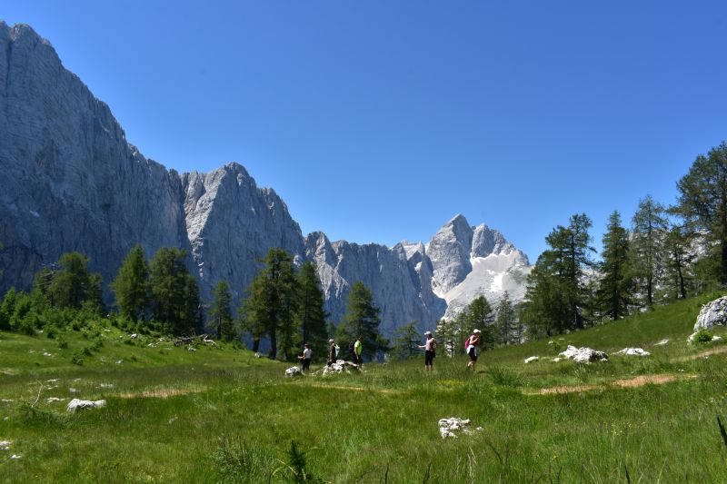Malo pred samo kočo pa smo naleteli na čredo kozorogov, ki so nas spremljali vse do koče in tudi pri koči smo jih kar imeli cel čas. Zato smo se tukaj tako dolgo zadrževali, saj se jih nismo naveličali slikat ter snemat. Ampak tukaj bi lahko ostal kar nekaj dni tako je lepo in razgledi so fantastični. Med vračanjem v Bovec smo se še ustavili pri Rabeljskem jezeru, kjer sem se jaz edini skopal.